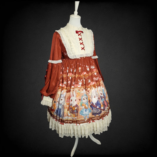 Swett Lolita Kleid – „Gentle Rabbit“ (Rust Red) Gr. L Hasenmotiv