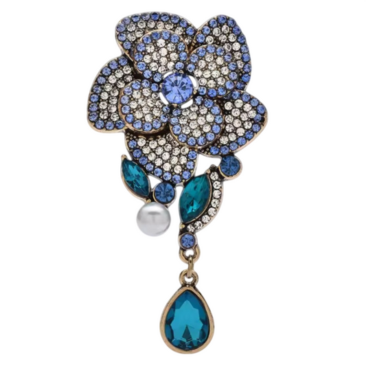 Prachtvolle Blumen-Brosche mit Strass & Perle Vintage-Stil 7,8 cm