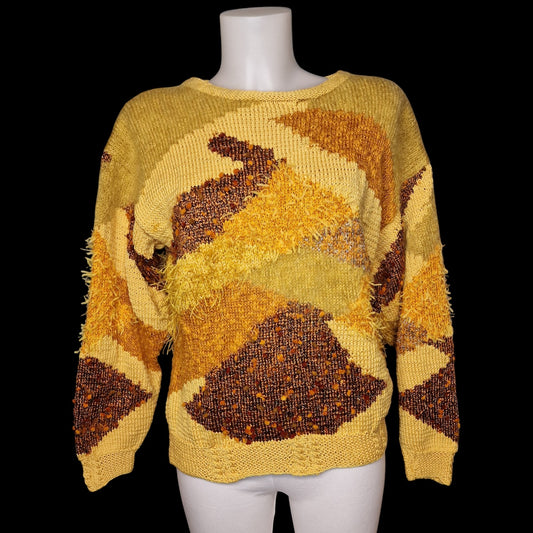Toller Trau Vintage im 80er/90er Materialmix Patchwork in Gelb-Braun M