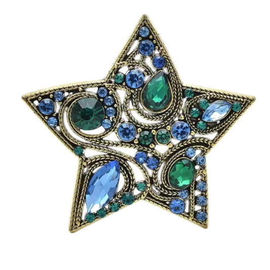 Funkelnde Stern-Brosche mit bunten Kristallen - Vintage-Stil