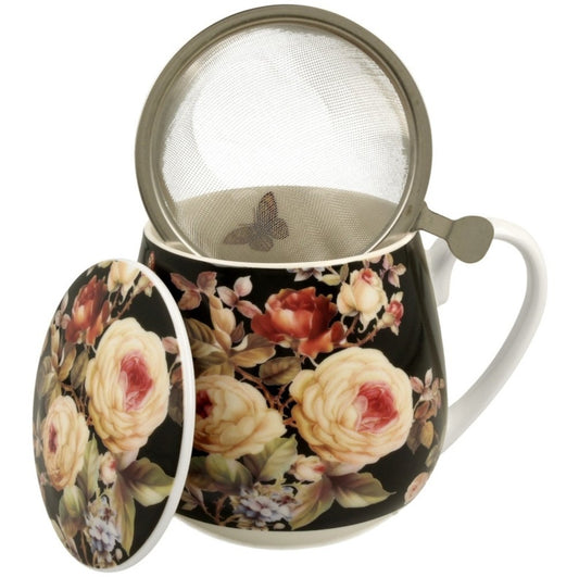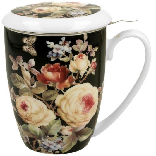 Duo Tasse vintage Blumen Warda schwarz 430 ml mit Teesieb