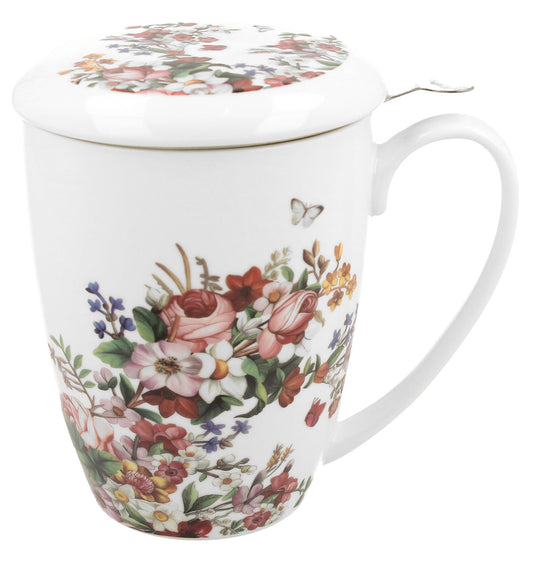 Duo Tasse Vintage Flowers weiß mit Teesieb 320 ml