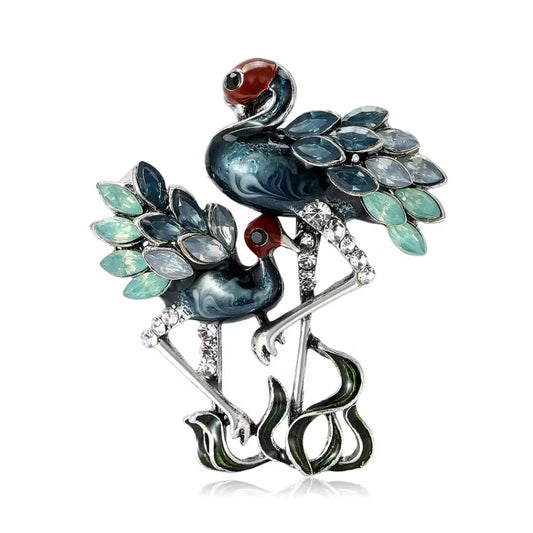 Klassiche vintage Brosche Pfau in violett-silber mit Strass