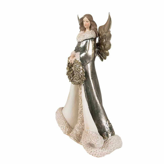 Vintage Weihnachtsfigur Engel aus Kunststoff, 24 cm, graugrün