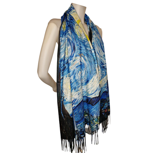 Warmer Schal mit Kunstmuster "Sternennacht" von "van Gogh"