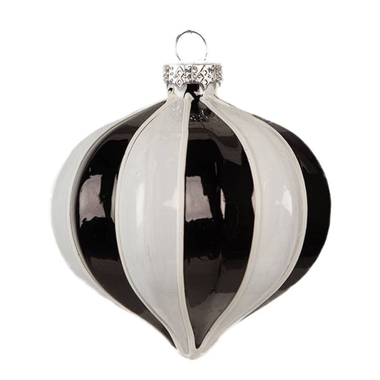 Christbaumkugel Ø 8x9 cm, schwarz-weißes Glas