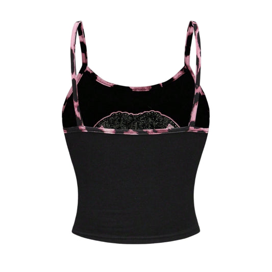 Süßes Kawaii Top mit Leopardenmuster, Spaghettiträgern und Hasi