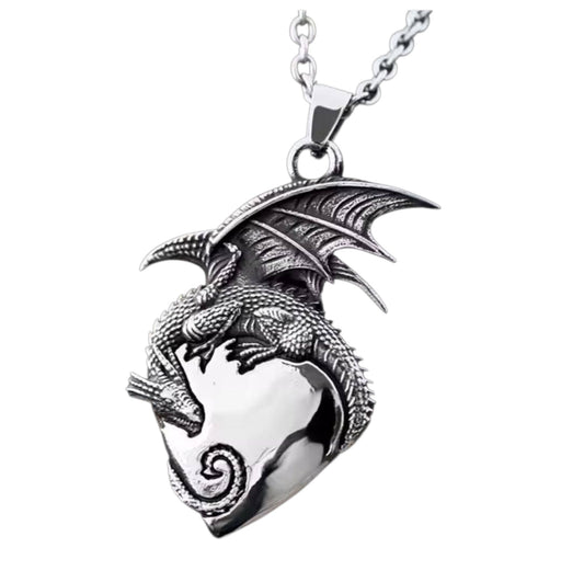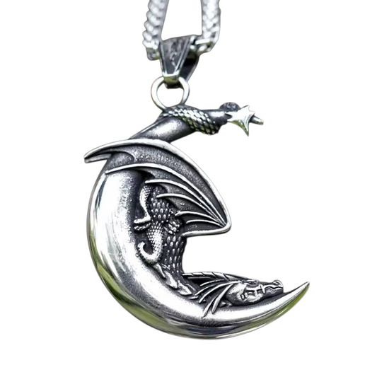 Anhänger mit Kette kleiner Drache auf Mond Edelstahl