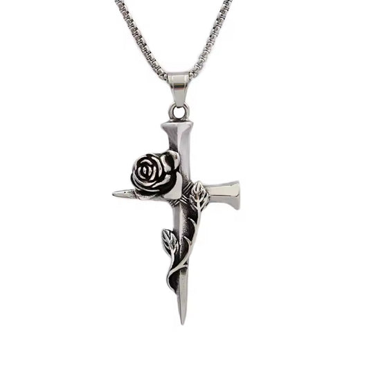 Romantisch Schwert Anhänger mit Rose Edelstahl