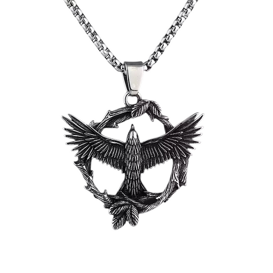 Fliegender Rabe als Anhänger mit Halskette Edelstahl