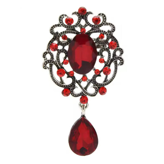 Große retro Brosche Blume mit Ornament in gold-bordeaux