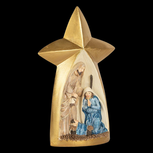 Weihnachtsdekoration Krippe in gold mit Stern 21 cm