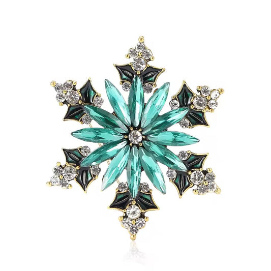 Vintage Brosche Damen kleine Schneeflocke in türkis Winterbrosche