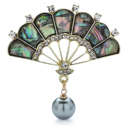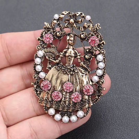Große Brosche mit "Lady mit Fächer" barock in goldfarben