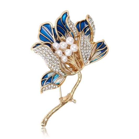 Brosche Schmetterling in blau-gold mit Strass vintage Look