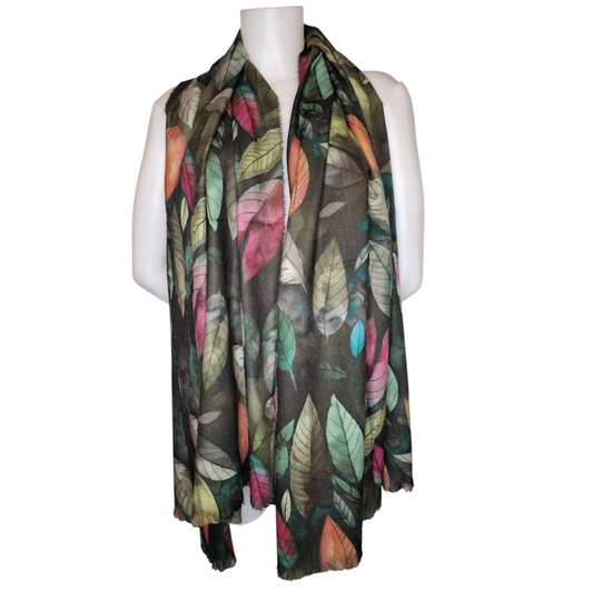 Kuscheliger Schal mit Blattmotiv grün 180x80 cm