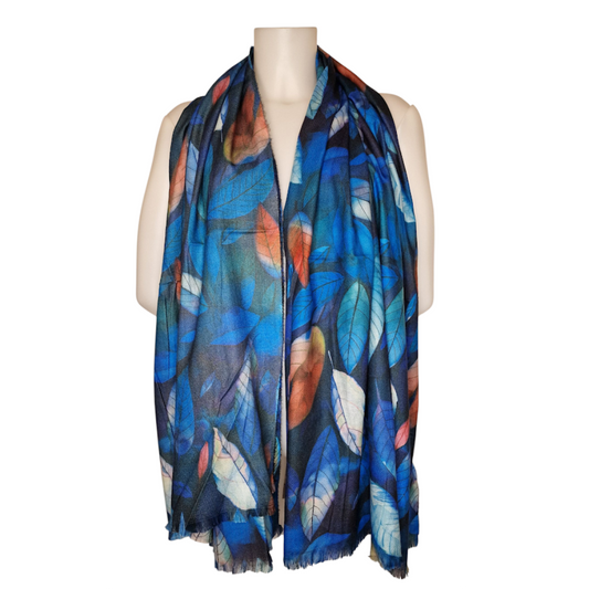 Kuscheliger Schal mit Blattmotiv blau 180x80 cm