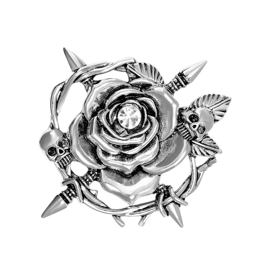 Gothic Brosche Rose with Skull silberfarben