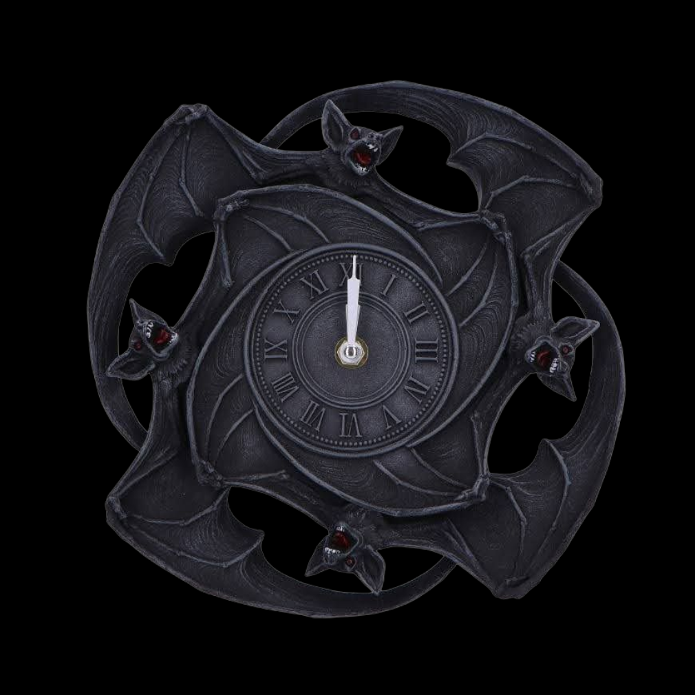 Gothic Wanddekoration Fledermaus Wanduhr schwarz-grau
