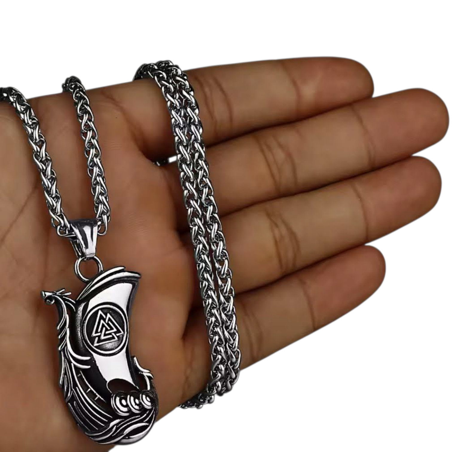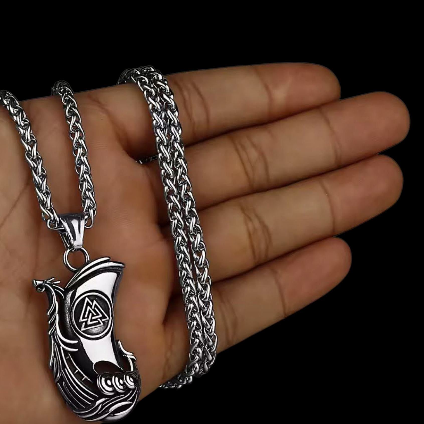 Halskette mit Anhänger Wikingerschiff aus Edelstahl