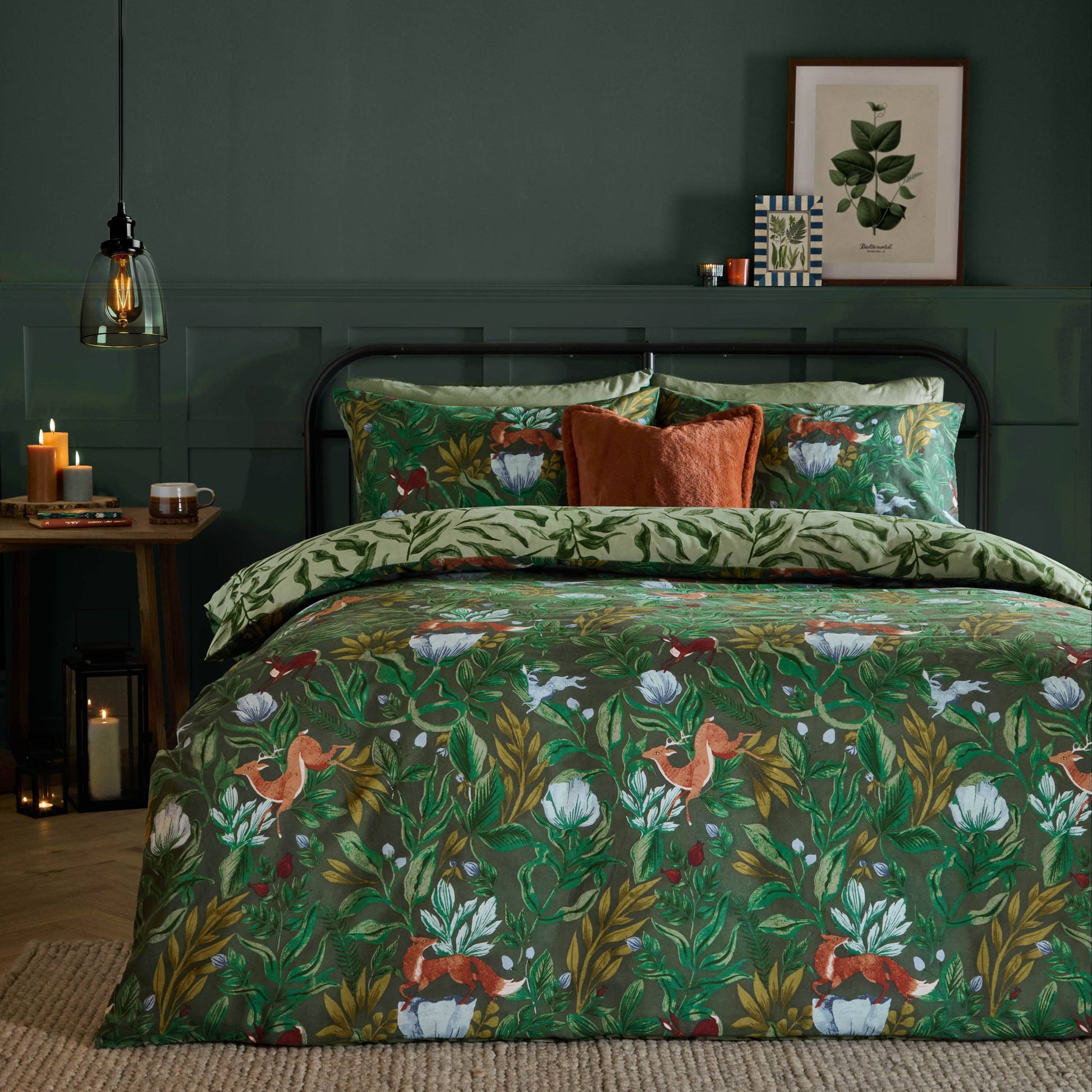 Vintage Wende-Bettwäsche Into The Woods" in grün Waldmotiv