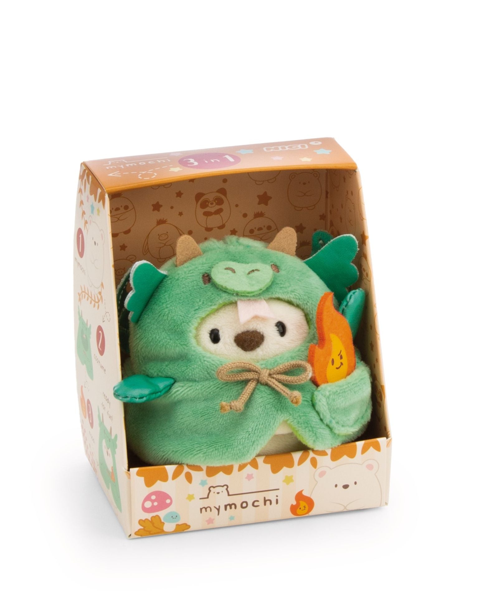 "Hallo, ich bin Snono und ich liebe es zu chillen!" Snono ist ein süßer, 8cm großer weißer Eisbär aus kuschelweichem NICI Plüsch, der als niedlicher Drachen-Eisbär mit Drachenmut und Kuschelfaktor überzeugt. Eisbär Snono aus der mymochi Fairy! Edition trägt ein grünes Drachenkostüm mit wilden Zacken und Glanzeffekten und hat seinen lustigen kleinen moodi, eine Flamme und liebgewonnenen Freund dabei. Das zauberhafte 3-in-1-Kuscheltier-Set ist in einer Geschenkbox verpackt, die Informationen zu Namen, Charaktereigenschaften, Spielkonzept und anderen mymochi-Charakteren enthält. Mit den austauschbaren Plüschkostümen kann jedes mymochi je nach Lust und Laune in eine andere Rolle schlüpfen.