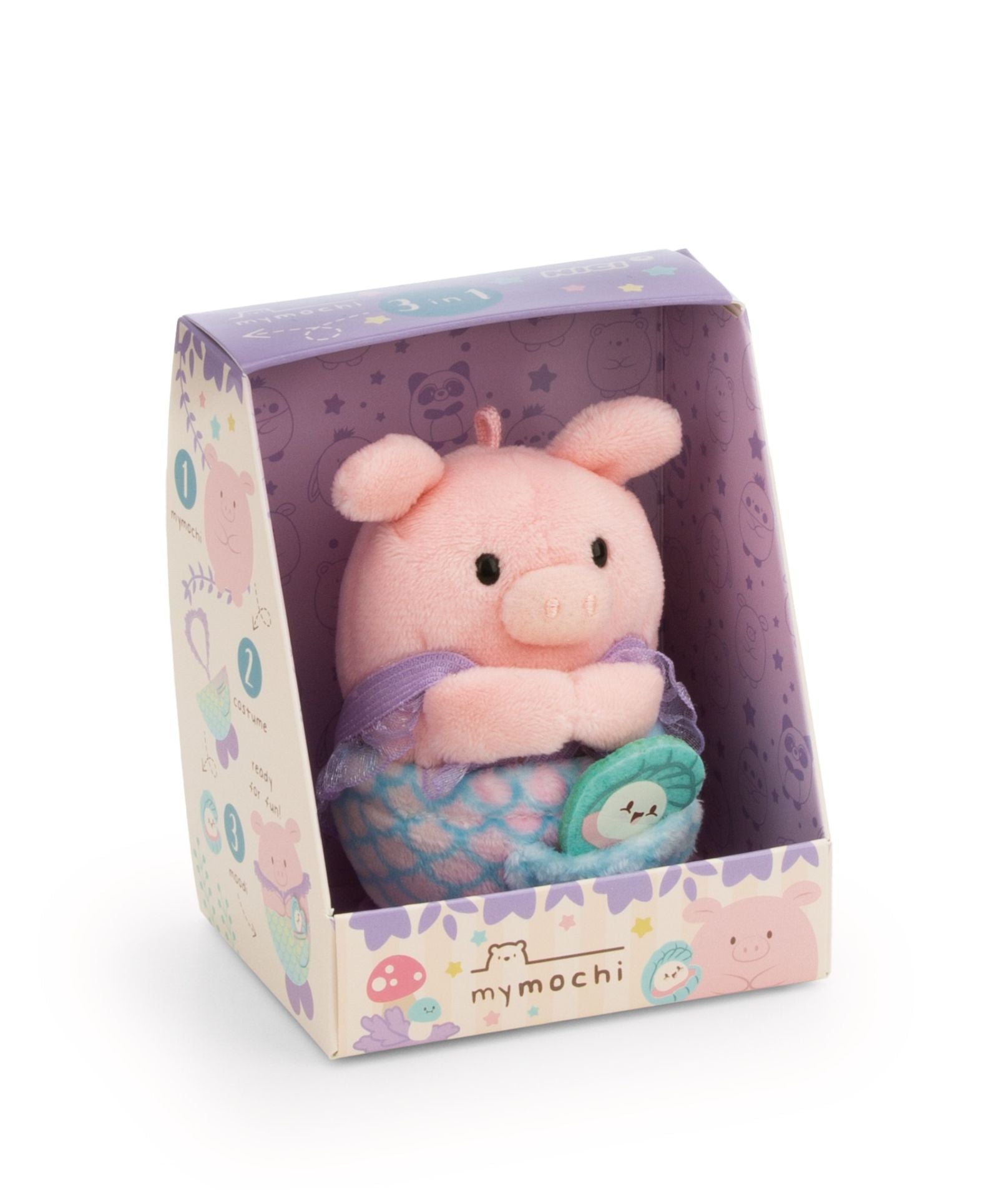 "Hallo, ich bin Onk und ich sammle alles mögliche!" Onk ist ein süßes, 8cm großes rosa Schweinchen aus kuschelweichem NICI Plüsch und gleichzeitig wohl auch das bezauberndste Meerjungfrauen-Schweinchen aller Zeiten. Schwein Onk aus der mymochi Fairy! Edition trägt ein Meerjungfrauenkostüm in Blau- und Lilatönen mit angedeuteten Schuppen und hat seinen lustigen kleinen moodi, eine Muschel und liebgewonnenen Freund dabei. Das zauberhafte 3-in-1-Kuscheltier-Set ist in einer Geschenkbox verpackt, die Informationen zu Namen,