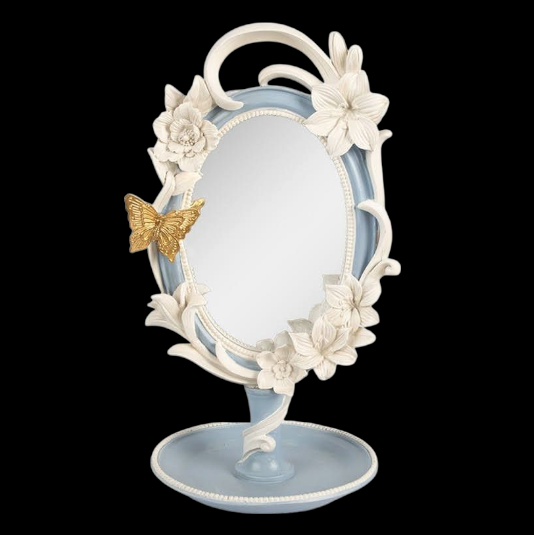 Romantischer Tischspiegel in hellblau Schmetterling 27 cm