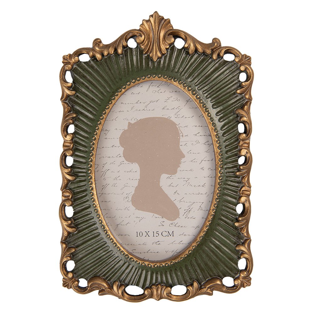 Romantischer Bilderrahmen in grün-gold 10 x 15 cm barock