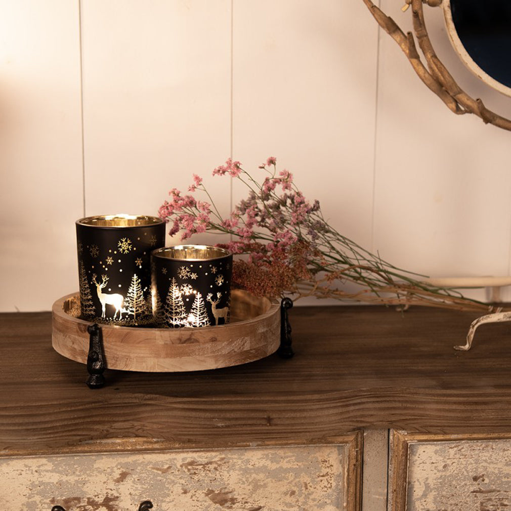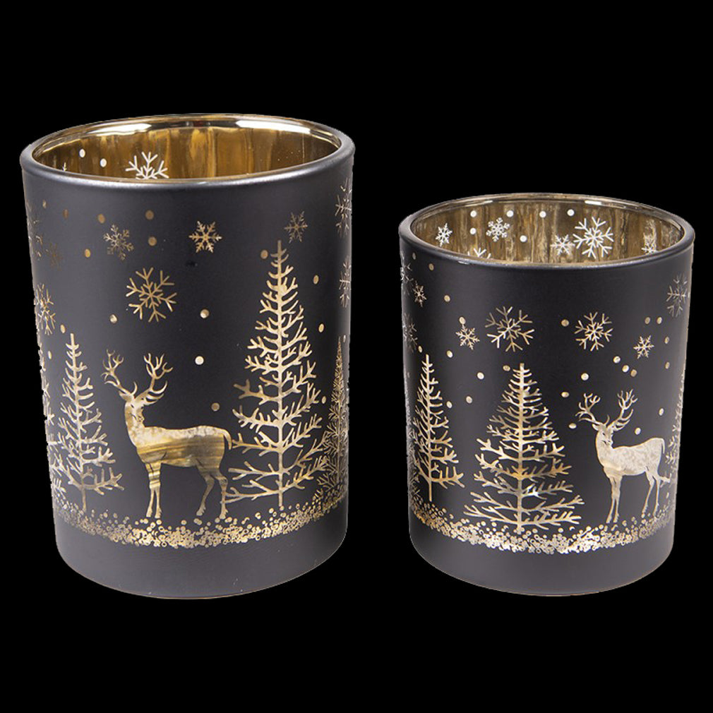 Schwarzes Teelichthalter Set Hirsche im Wald festlich 2-teilig