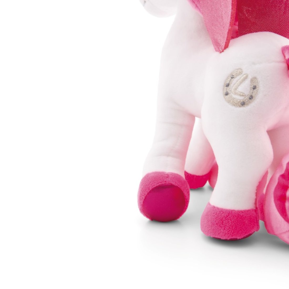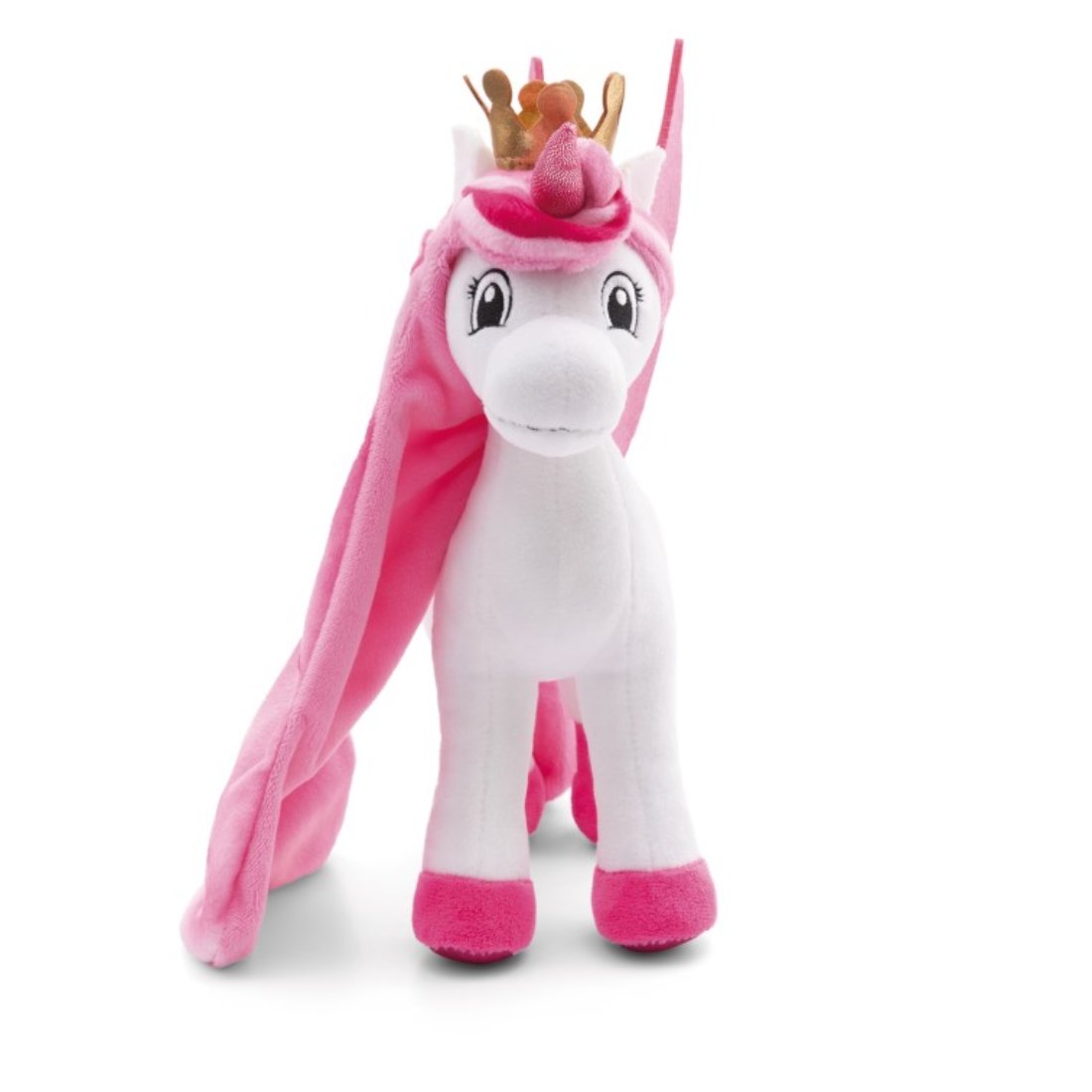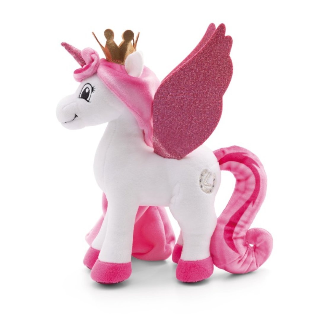 Lissy PONY Unicorn Tamani ist eine süße Einhorn-Prinzessin mit goldener Krone und magischen Glitzerflügeln. Die stehende Tamani ist aus kuschelweichem NICI-Plüsch gefertigt und lässt mit ihrem zauberhaften Look in Weiß und Pink Mädchenherzen höherschlagen. Ihr aufwändiges Mähnendesign in verschiedenen Pinktönen, die XXL-Einhornflügel und das pinke Glitzerhorn gepaart mit dem extrem niedlichen Gesichtsausdruck begeistert kleine Einhorn und Lissy PONY Fans. Ein außergewöhnlich schönes Kuscheltier zum Liebhaben und Sammeln, das zudem die Fantasie anregt und die aufregenden Abenteuer der Lissy PONYs nachspielen lässt.