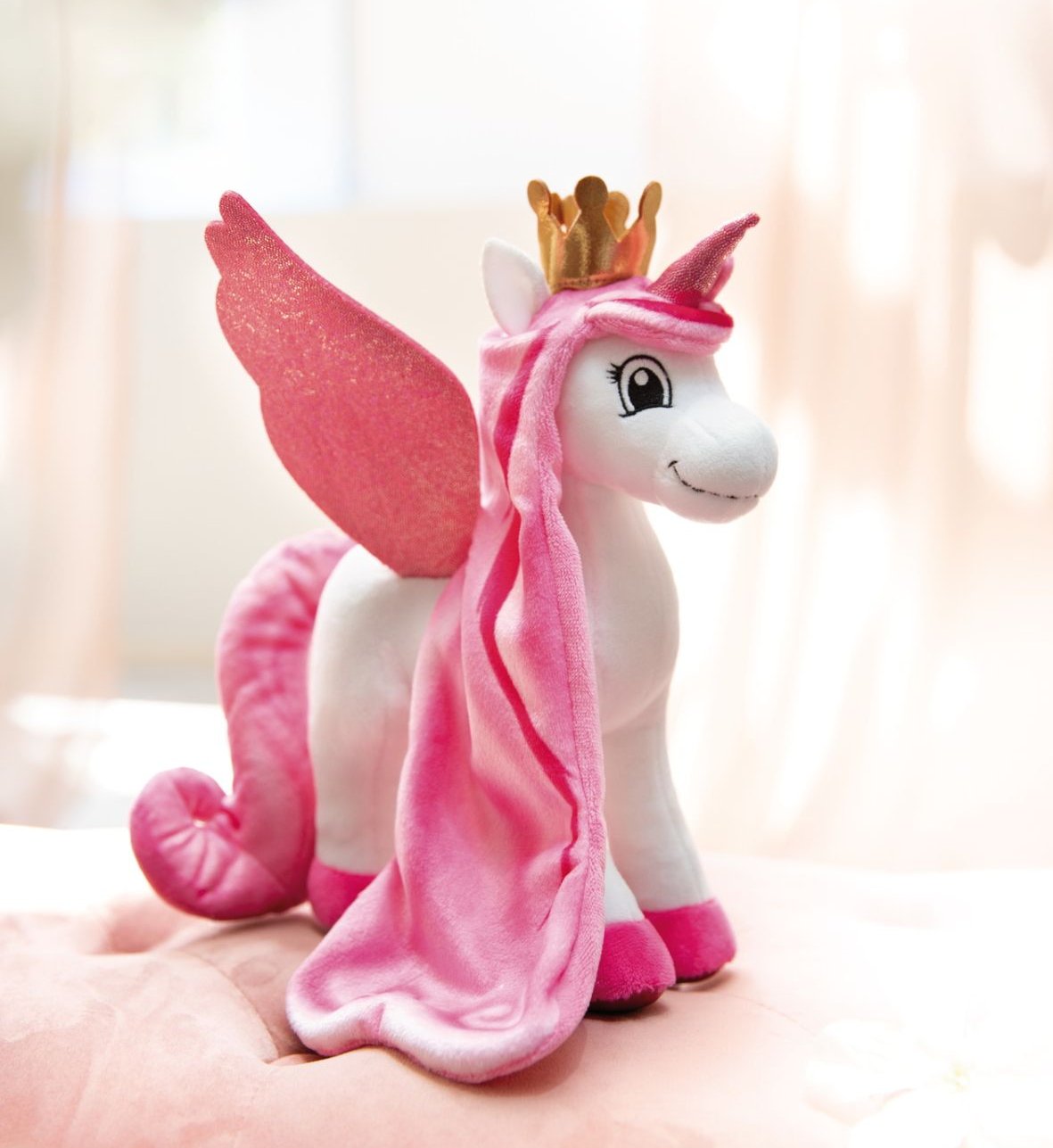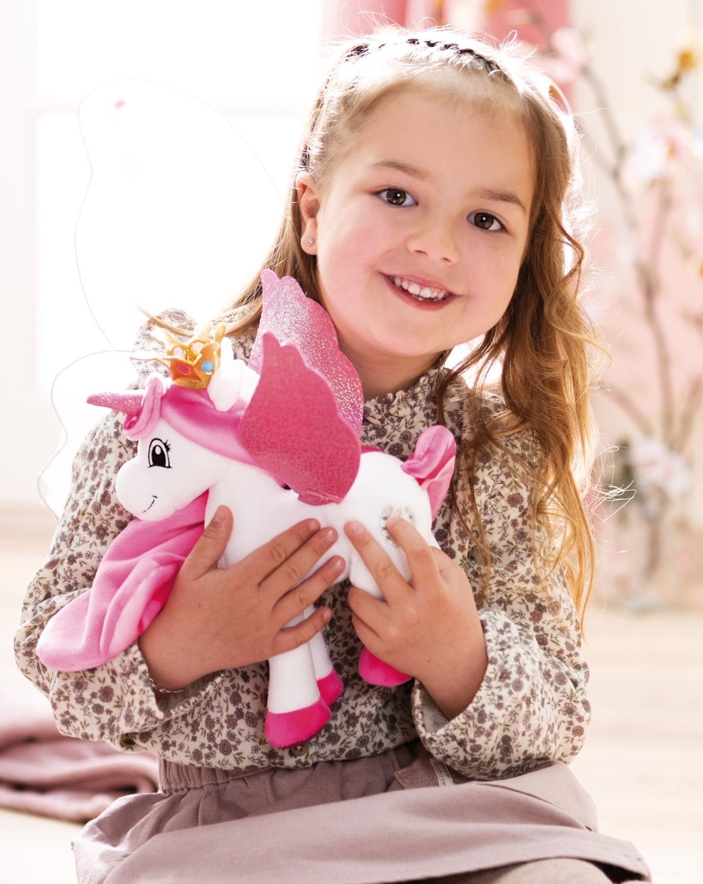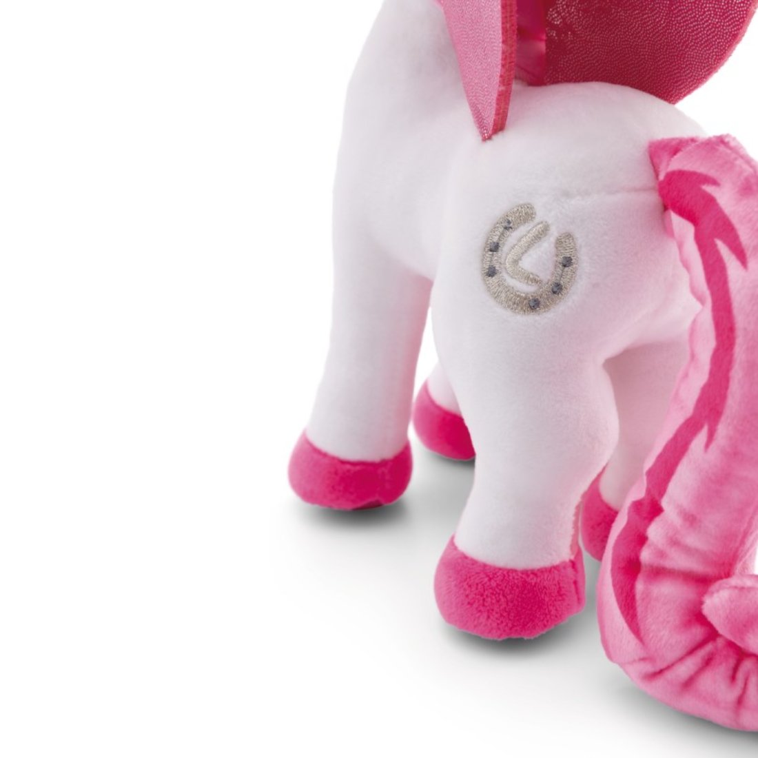 Lissy PONY Unicorn Tamani ist eine süße Einhorn-Prinzessin mit goldener Krone und magischen Glitzerflügeln. Die stehende Tamani ist aus kuschelweichem NICI-Plüsch gefertigt und lässt mit ihrem zauberhaften Look in Weiß und Pink Mädchenherzen höherschlagen. Ihr aufwändiges Mähnendesign in verschiedenen Pinktönen, die XXL-Einhornflügel und das pinke Glitzerhorn gepaart mit dem extrem niedlichen Gesichtsausdruck begeistert kleine Einhorn und Lissy PONY Fans. Ein außergewöhnlich schönes Kuscheltier zum Liebhaben und Sammeln, das zudem die Fantasie anregt und die aufregenden Abenteuer der Lissy PONYs nachspielen lässt.