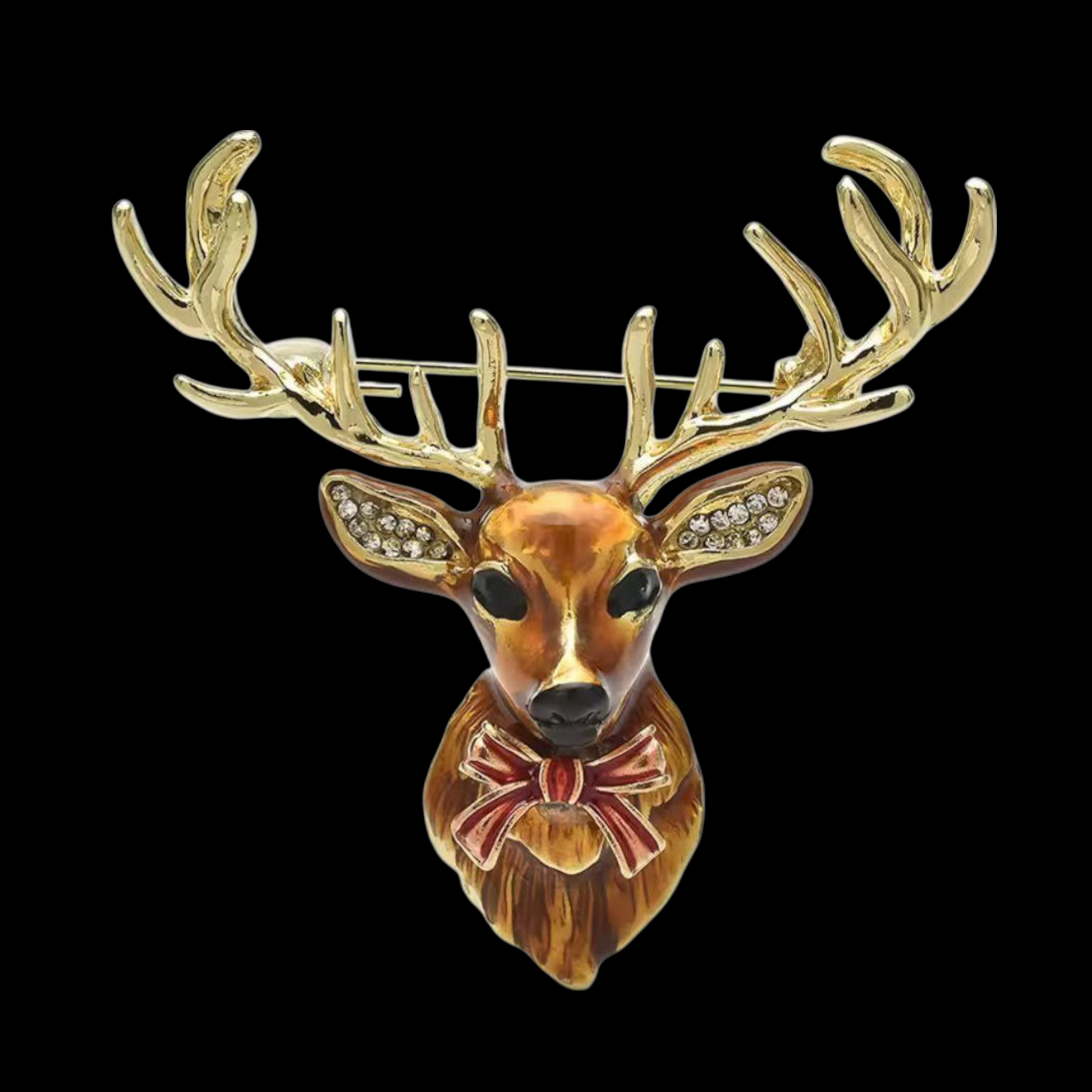 Vintage Brosche Hirschkopf in goldfarben 5,7 cm