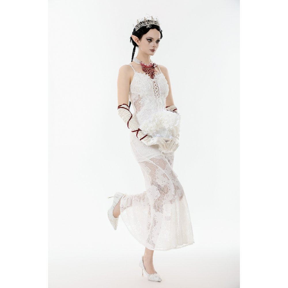 - Der Fächer besteht aus einem groben, weißem Spitzenstoff