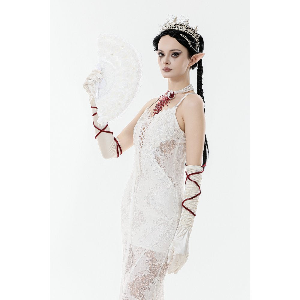 Weißer Hochzeitfächer aus Rosen und Spitzen